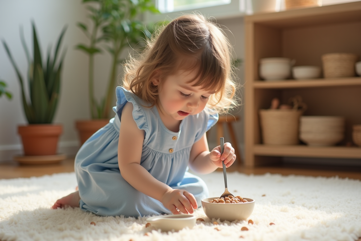 Adapter chaque activité montessori à l’âge de l’enfant, c’est reconnaître la richesse de son développement et la diversité de ses intérêts. Entre 0 et 3 ans, la motricité fine prend son essor : transvaser de l’eau avec une petite carafe, enfiler de grosses perles, manipuler des objets familiers… Autant de gestes simples qui, à la maison, dessinent les premières activités montessori maison et cultivent la confiance.
